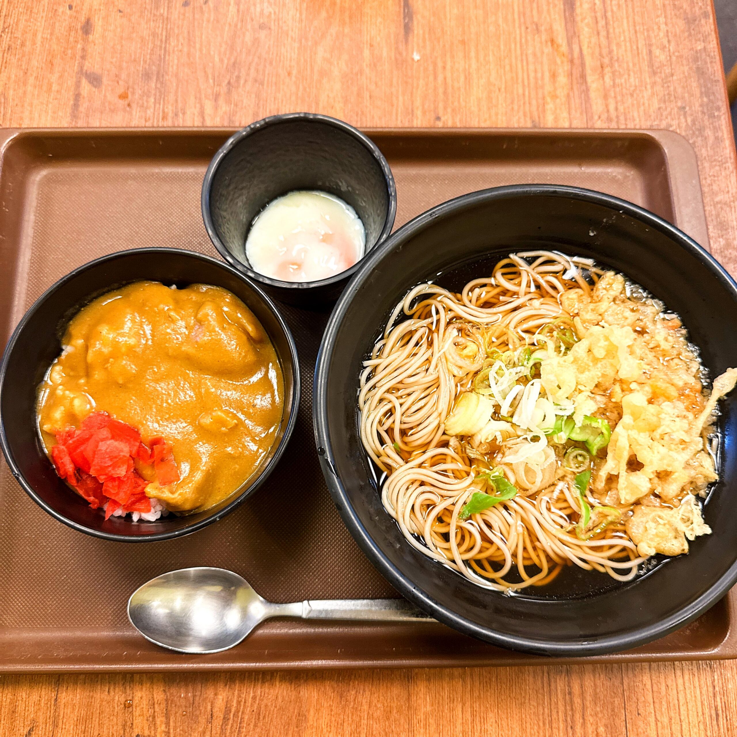 匠そば@御徒町(朝定食カレー)自家製の麺は細くて喉越し滑らか!そば屋的な出汁が効いたカレーは絶品!!ルーは優しい味わいですけどね。